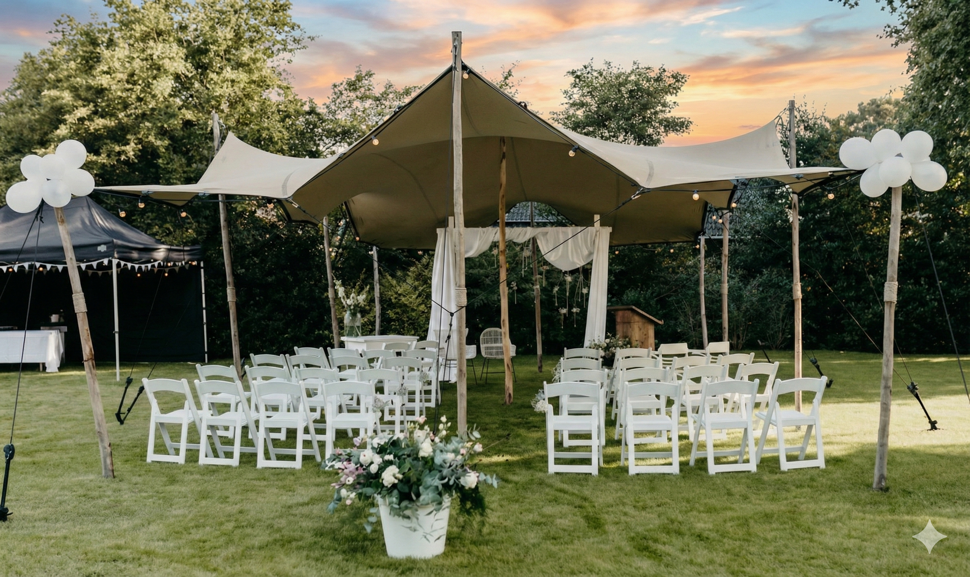 Prachtige stretch tent voor uw bruiloft, open dag, feest! De stretchtent heeft een luxe uitstraling en is een echte eyecatcher.
